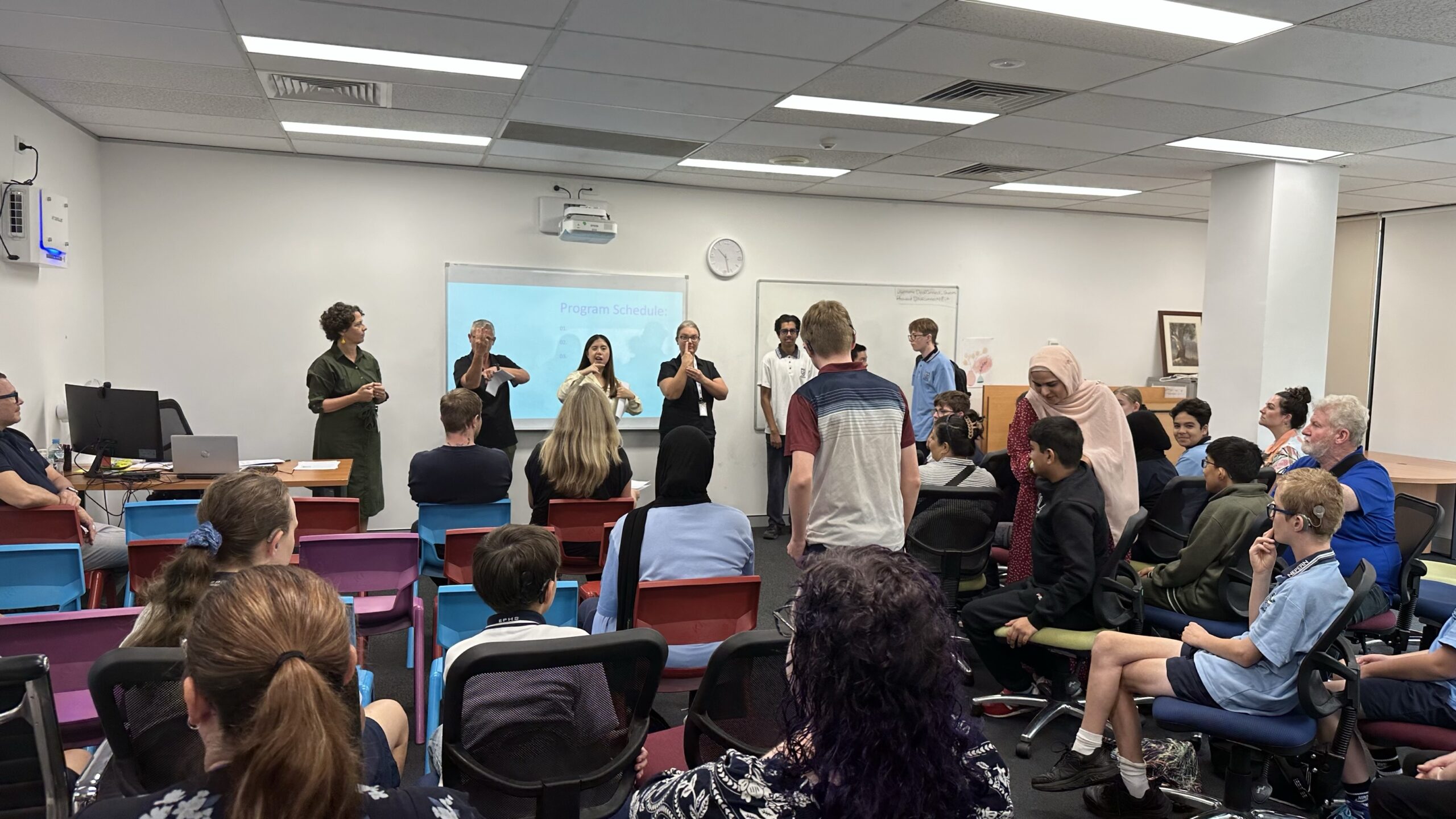 To celebrate Auslan Day, Deaf Connect invited Deaf and hard of hearing high school students to our Parramatta office to celebrate being Deaf and the values of using Auslan. This event included fun activities, opportunities to meet Deaf elders and Deaf Indigenous people, networking with Deaf people, and learning about Deaf culture. We also introduced students to the services and opportunities available at Deaf Connect, to inspire them to get involved in community activities and further their learning.